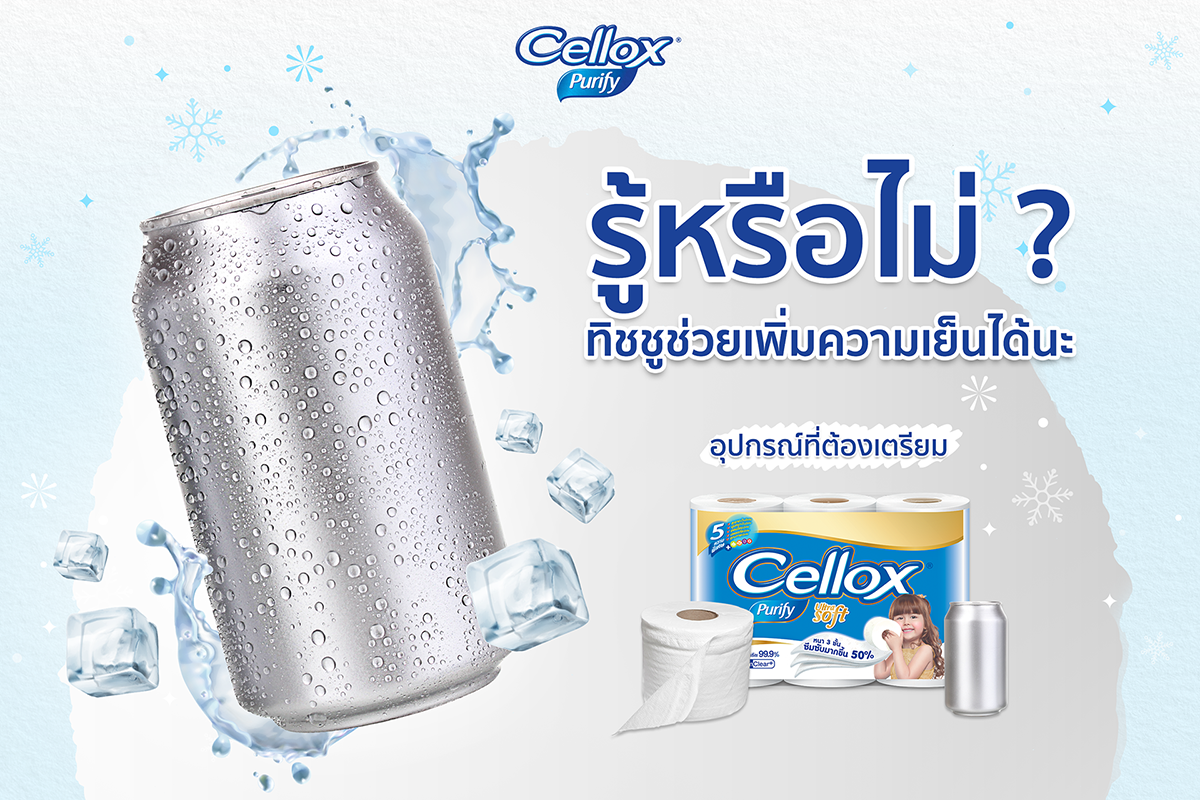 อากาศร้อนแบบนี้ ต้องหาเครื่องดื่มเย็นๆมาดับร้อนกันหน่อยแล้ว!!! แต่บางทีเวลาซื้อเครื่องดื่มมาแล้วไม่เย็นชื่นใจเอาซะเลย แถมยังต้องเสียเวลารอให้เครื่องดื่มเย็นอีกด้วย แบบนี้ต้องใช้ทิชชูช่วย! มาดูเคล็ดลับง่ายๆที่เพิ่มความเย็นด้วยทิชชูให้เครื่องดื่มเย็นทันใจในเวลาไม่กี่นาทีกัน มาเพิ่มความเย็นให้เครื่องดื่มของคุณได้ง่ายๆ แค่มีกระดาษทิชชู Cellox Purify Ultra Soft กระดาษทิชชูเกรดพรีเมียม หนา 3 ชั้น ซึมซับมากขึ้น 50% ไม่เป็นขุยแม้เปียกน้ำ ส่วนสาเหตุที่ทำให้เกิดความเย็นได้เร็วขึ้นก็เพราะ น้ำที่อยู่ในกระดาษทิชชูเป็นตัวนำความเย็น จึงช่วยส่งความเย็นจากอากาศภายนอกเข้าสู่วัตถุได้เป็นอย่างดี